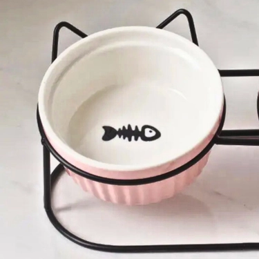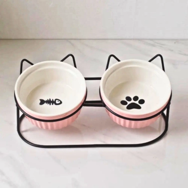 - Double cats bowls make feeding and watering easier, perfect for both wet and dry food