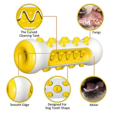 - Bone-shaped design with textured surfaces for effective teeth cleaning.