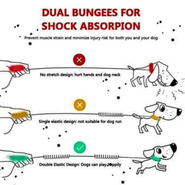 - Shock-absorbing bungee to reduce pulling strain.