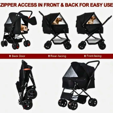 The lightweight yet sturdy frame ensures smooth handling, and the foldable design allows for convenient storage and travel. Whether you’re heading to the park, shopping, or travelling, this stroller provides a practical and stylish way to keep your pet close and comfortable.